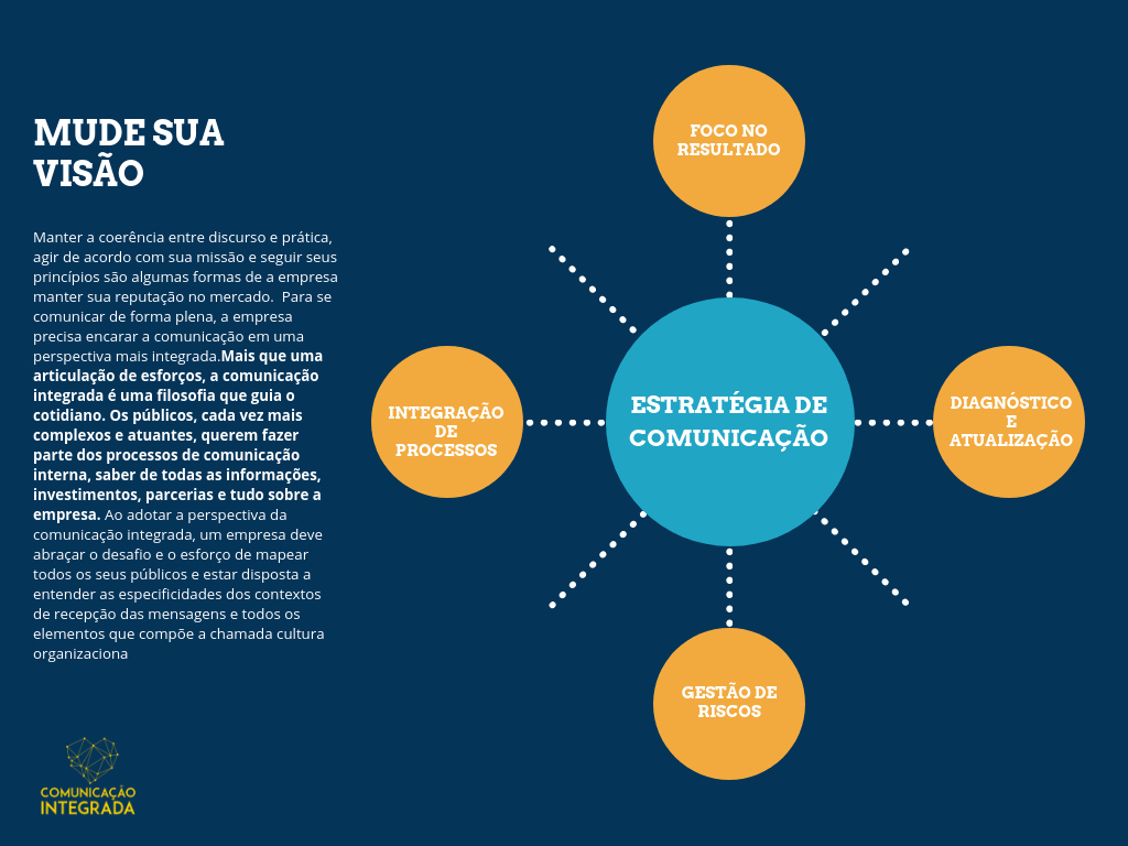 Nesse sentido, comunicação integrada vai além e apresenta-se como uma filosofia e conjunto de ações capazes de incrementar as relações organizacionais em nível interno, mercadológico e institucional, ajudando as organizações a cumprir sua missão e atingir suas metas. Até quando agir de forma fragmentada?