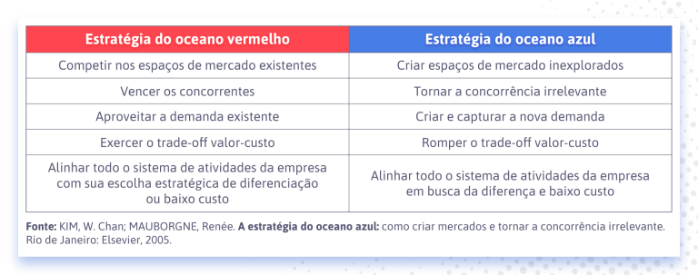 Nesse sentido, as empresas estão tão cegas pela concorrência, que entram em um ciclo de mesmice e estagnação. Por outro lado, é preciso conhecer outros cenários, como o oceano azul.